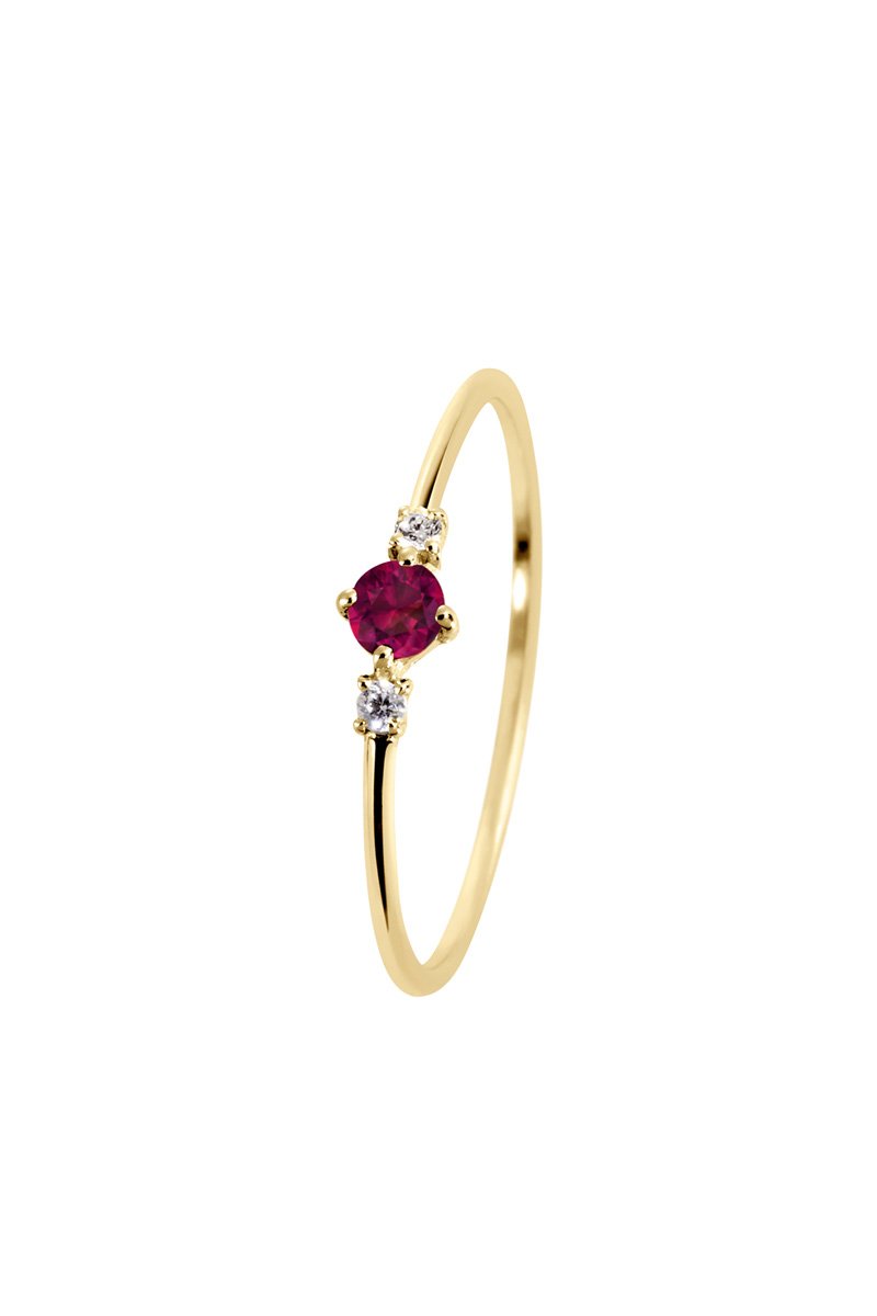 Anel de prata banhada a ouro amarelo com um rubi e zircónios.