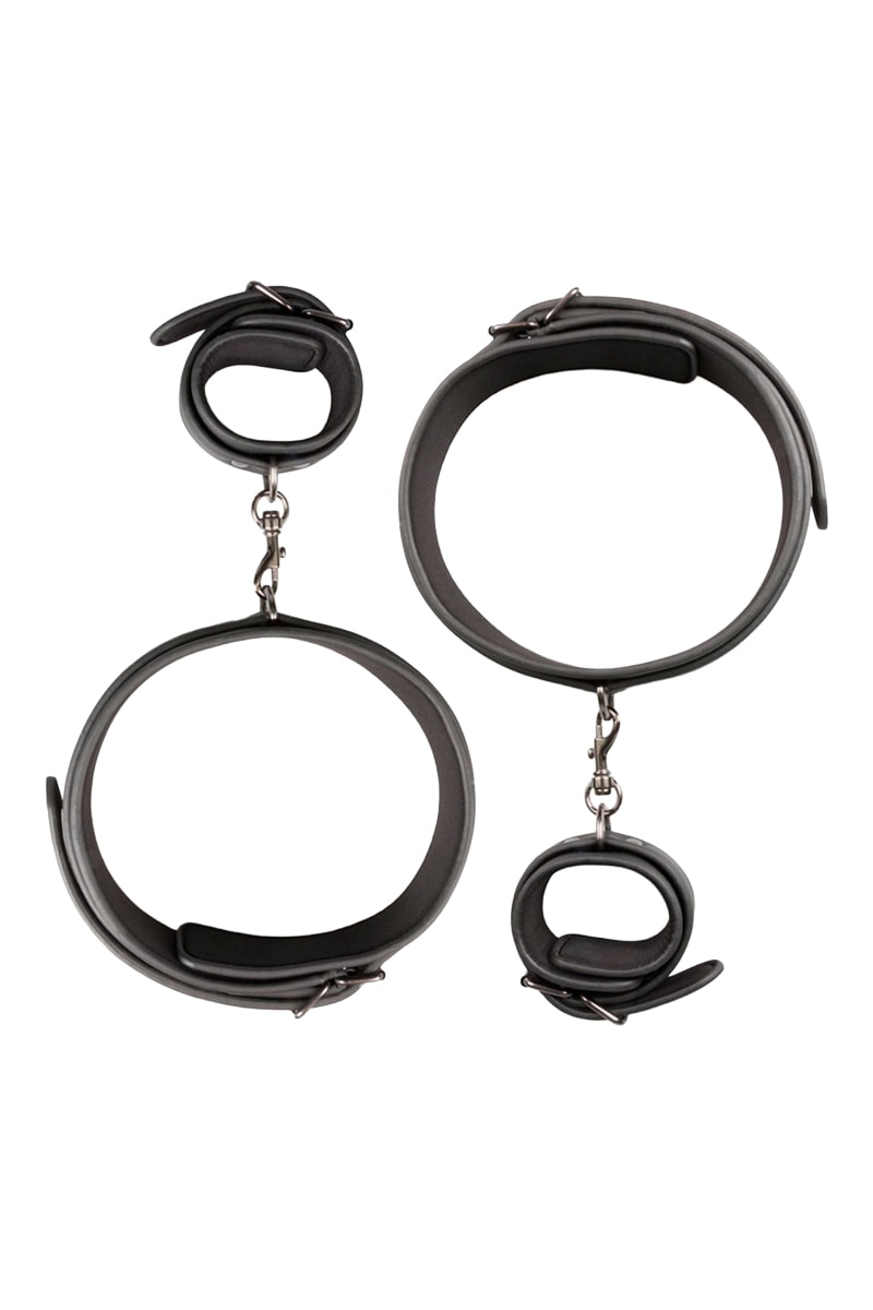 As algemas estão ligadas às algemas de coxa por fechos de clipe, o que também permite destacá-los e usá-los separadamente ou em combinação com outros brinquedos BDSM.