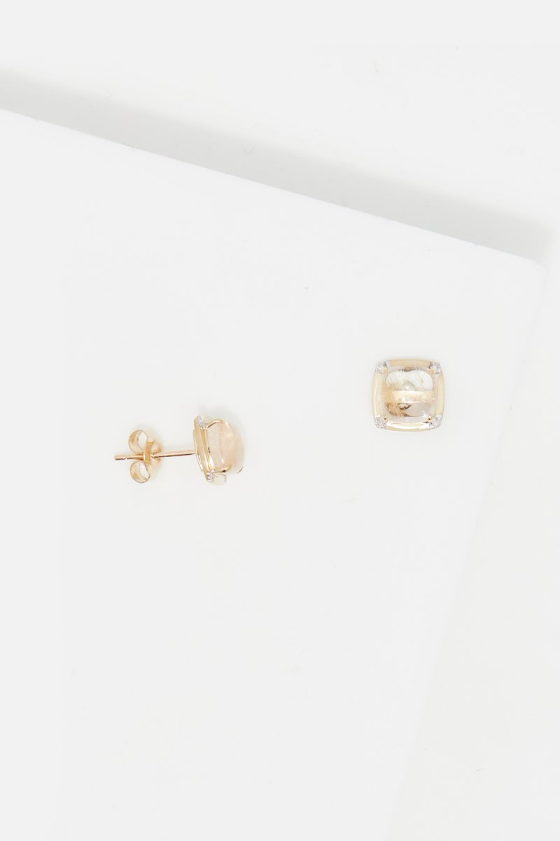 Brincos de ouro amarelo com 4 diamantes e um quartzo rútilo.