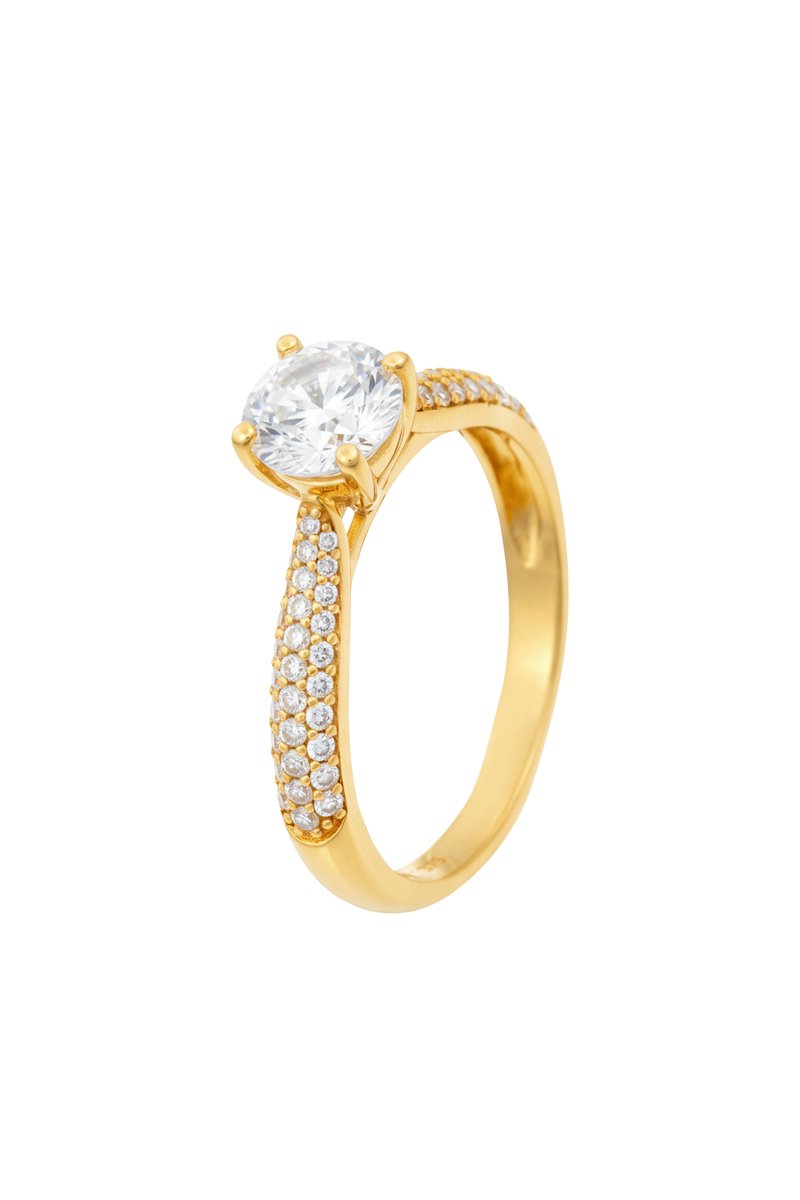 Anel em ouro amarelo com 62 diamantes e um topázio.