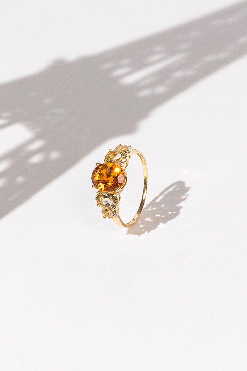 Anel Yellow Hill - Ouro amarelo, quartzo citrino e quartzo