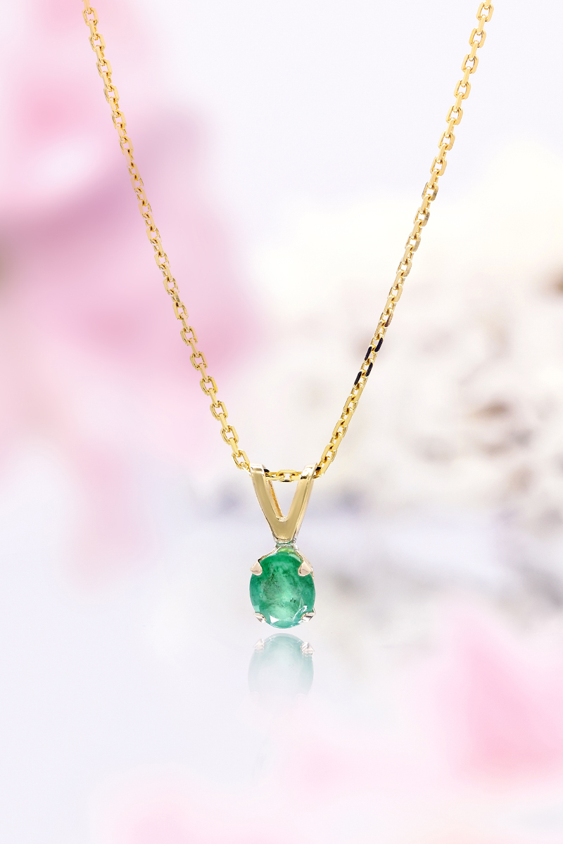Pendente de ouro amarelo com uma esmeralda.