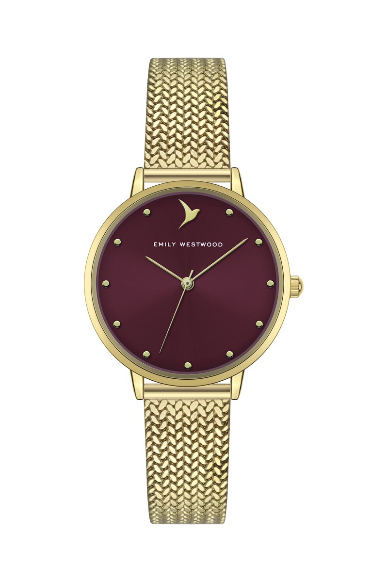 Relógio de quartzo em aço - Dourado e bordô - Emily Westwood