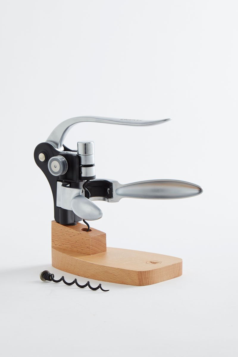 Saca-rolhas com alavanca com base.