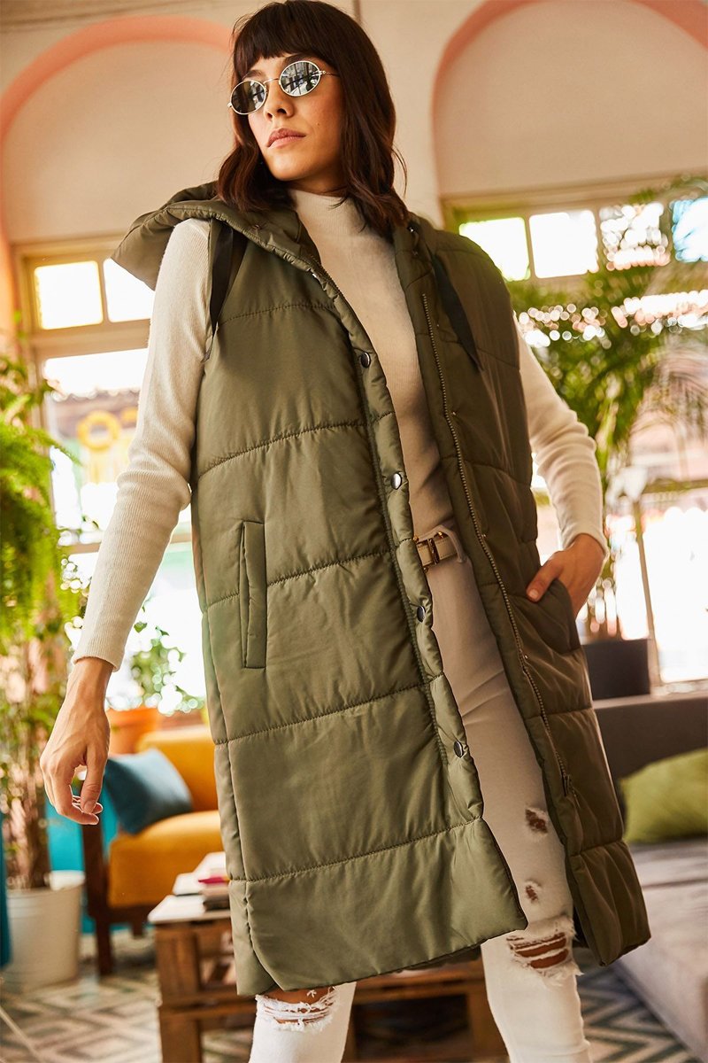 Colete acolchoado comprido - Verde