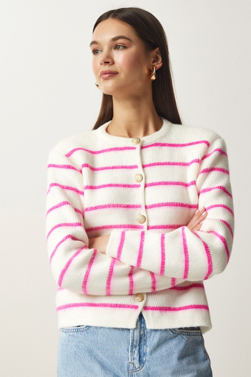 Casaco de malha - Cru e fúcsia