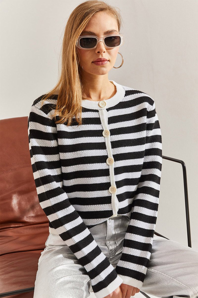 Estampado às riscas.