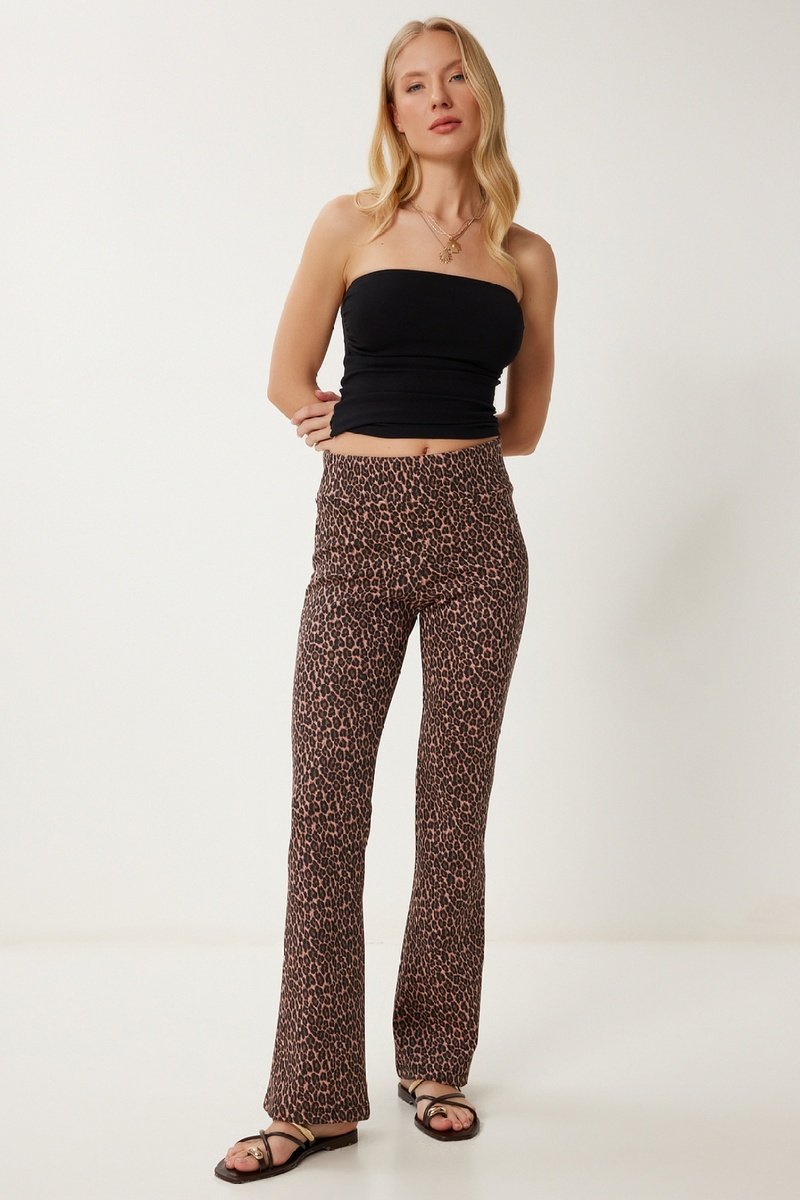 Calças flare cintura subida - Preto e castanho