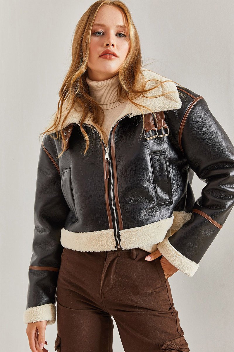 Pelo sintético no decote, nas mangas e na base.