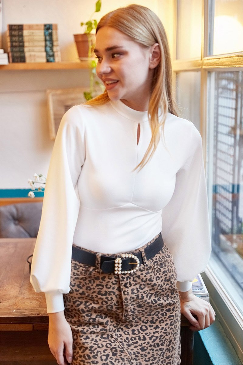 Blusa slim de mangas compridas volumosas.