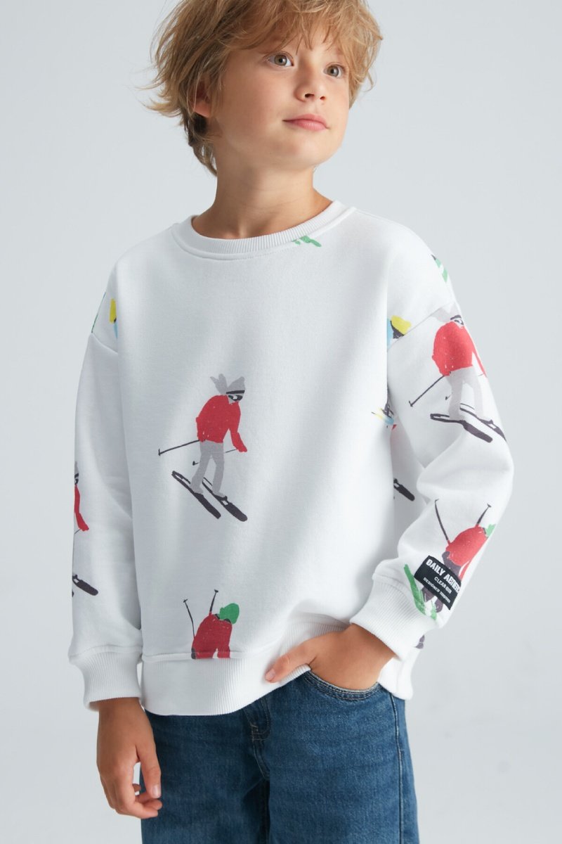 Sweat de mangas compridas 1 das quais com aplicação e inscrição.