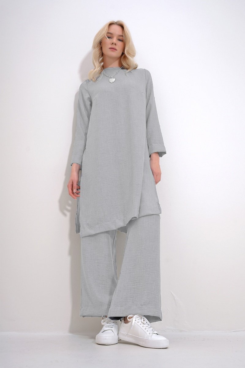 Túnica e calças palazzo - Cinzento