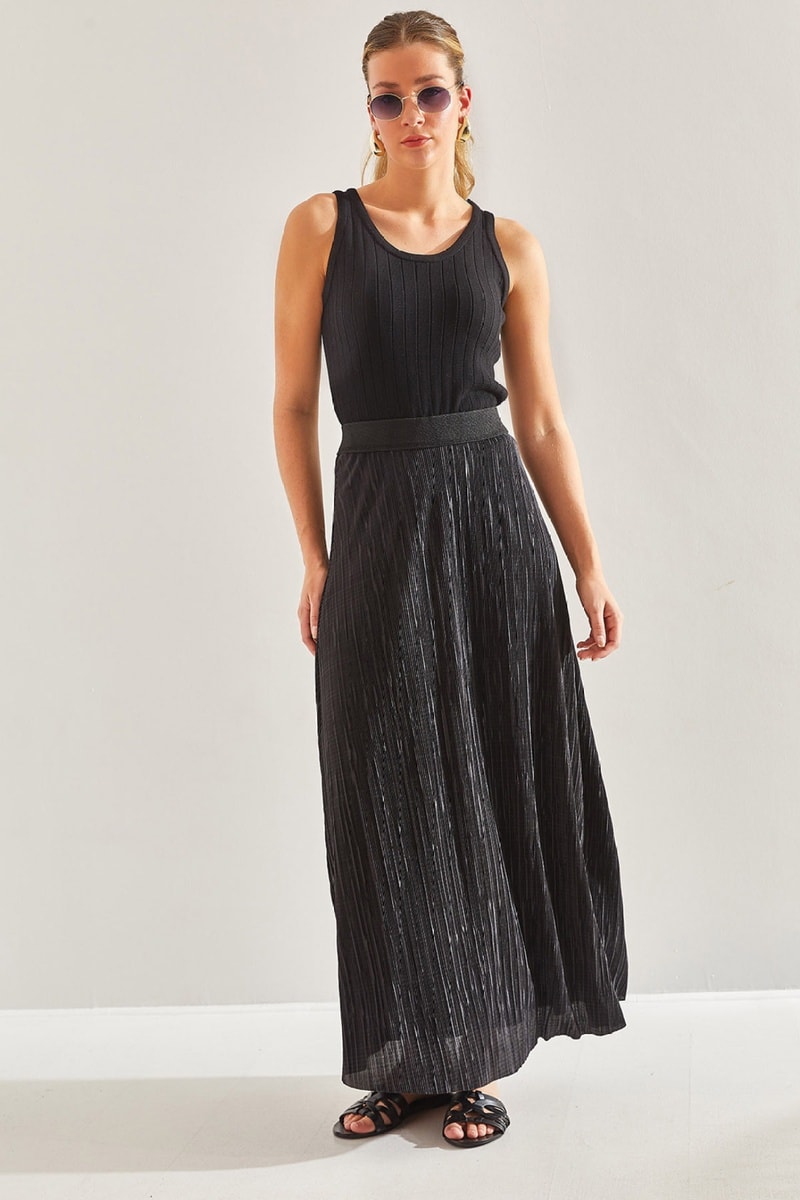 Saia comprida plissada - Preto