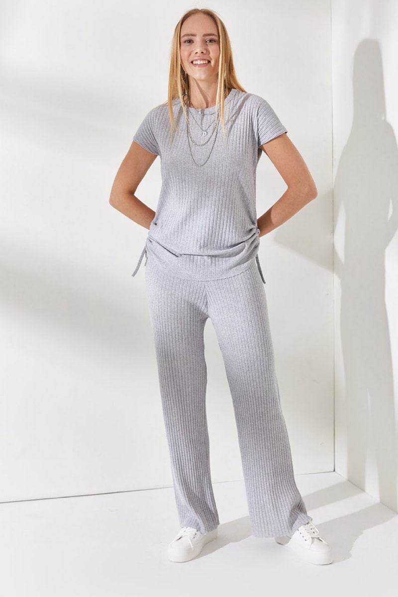 Top e calças palazzo - Cinzento-claro
