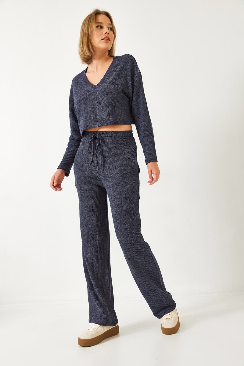 Crop top e calças - Azul-escuro