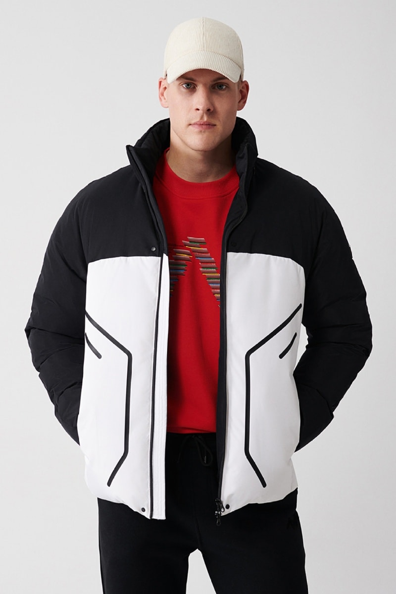 Casaco com capuz integrado.