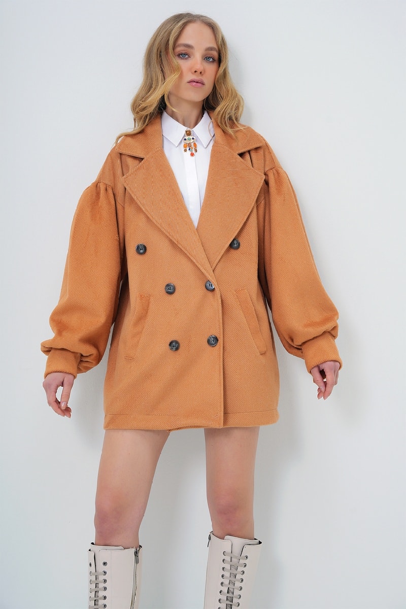 Sobretudo de mangas compridas volumosas.