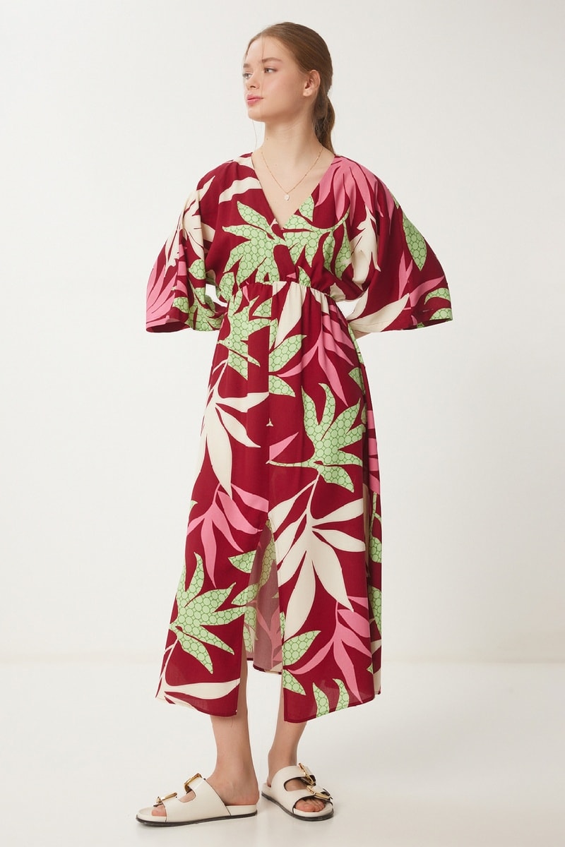 Vestido comprido de mangas 3/4 quimono.