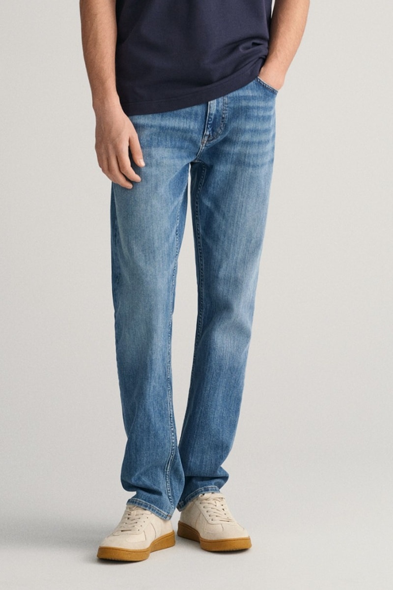 Calças de ganga regular.