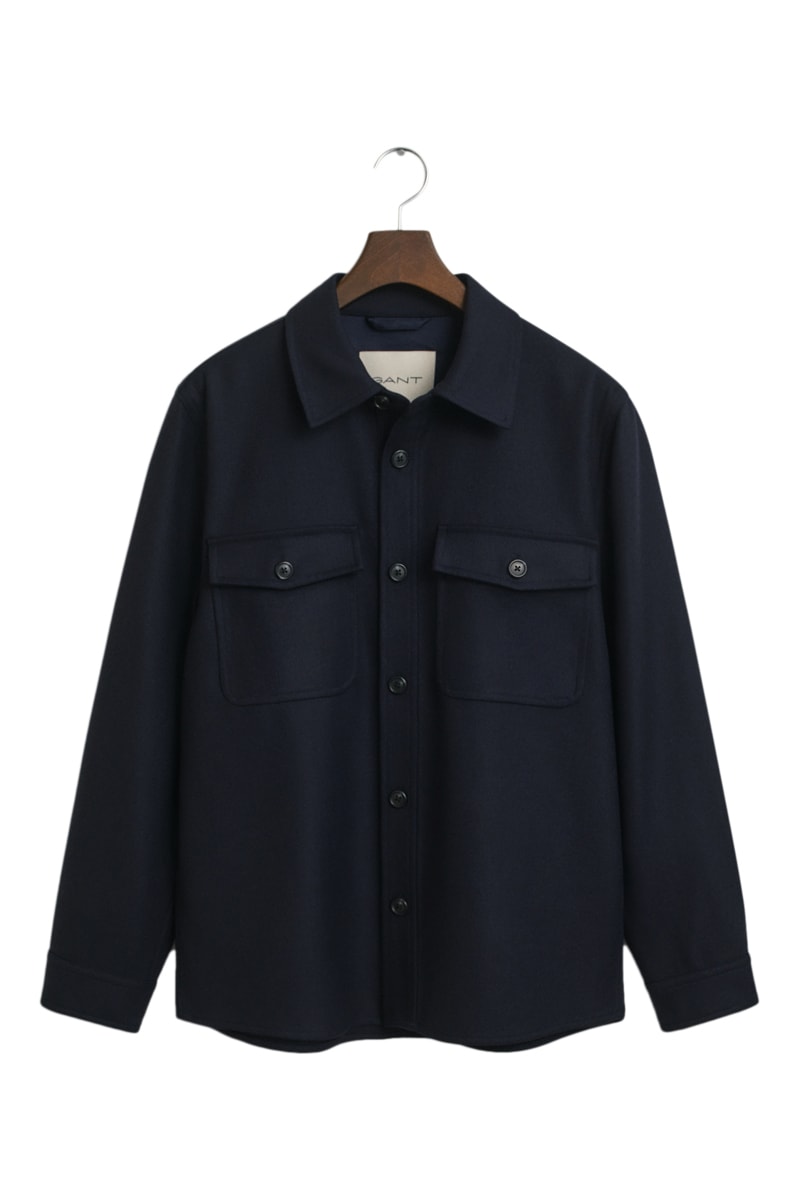 Sobrecamisa regular em lã - Azul-marinho