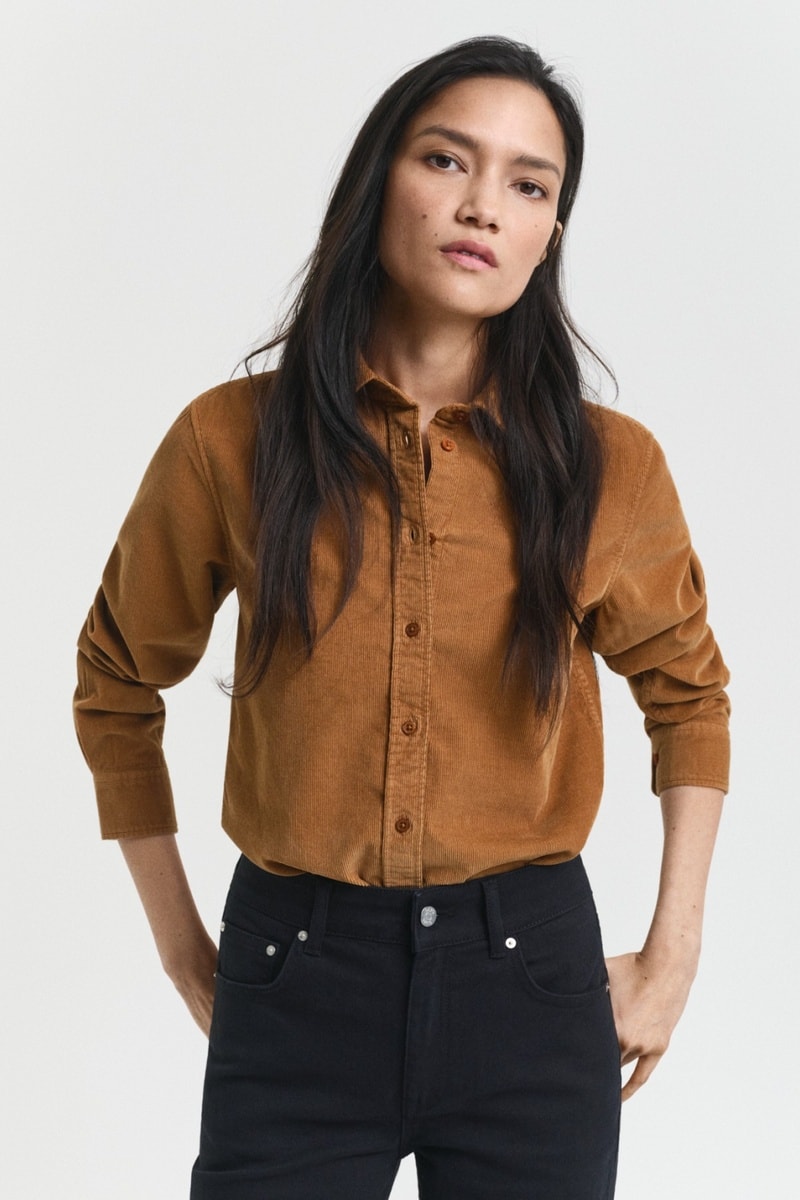 Camisa regular em veludo - Castanho