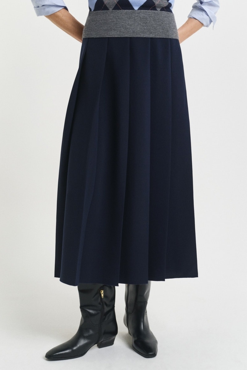 Saia plissada - Azul-marinho