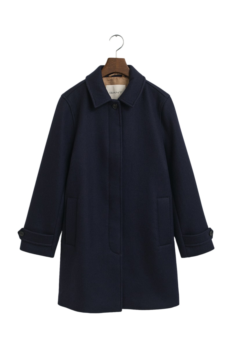 Sobretudo regular em lã - Azul-marinho