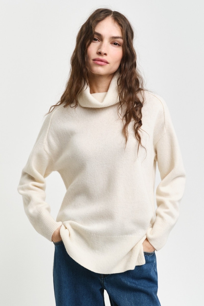 Camisola regular em lã de cordeiro.