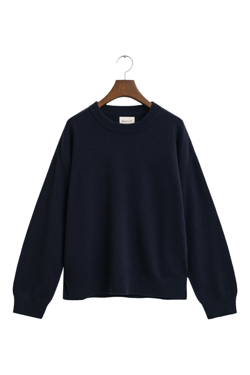 Camisola regular em lã de cordeiro - Azul-marinho