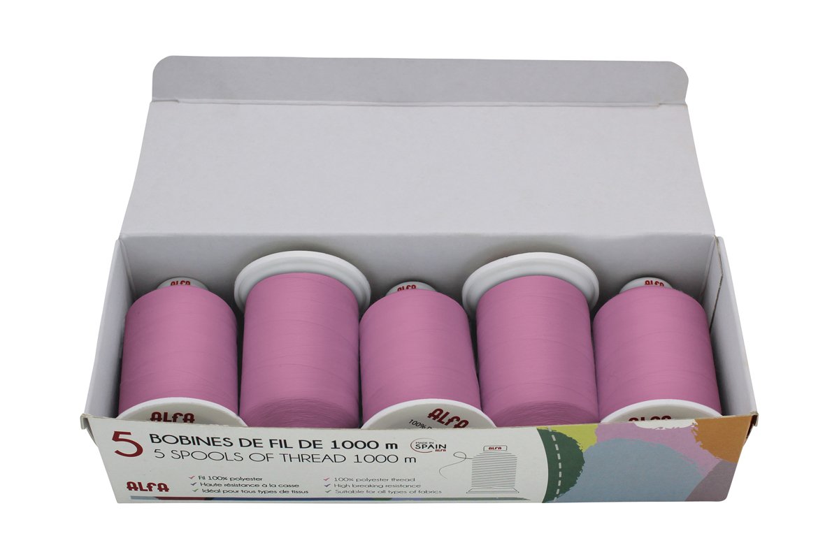 5 bobinas de linha - 1000 m - Rosa