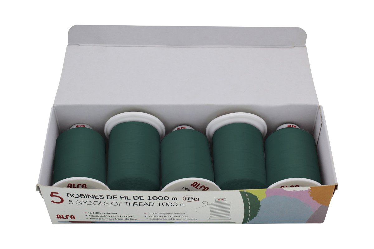 5 bobinas de linha - 1000 m - Verde-garrafa