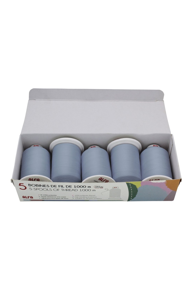 5 bobinas de linha - 1000 m - Azul-claro