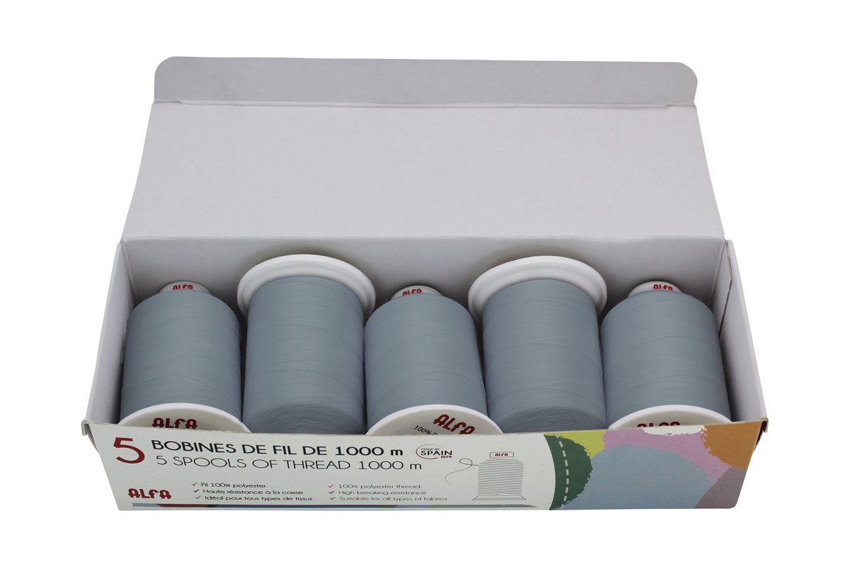 5 bobinas de linha - 1000 m - Cinzento-claro