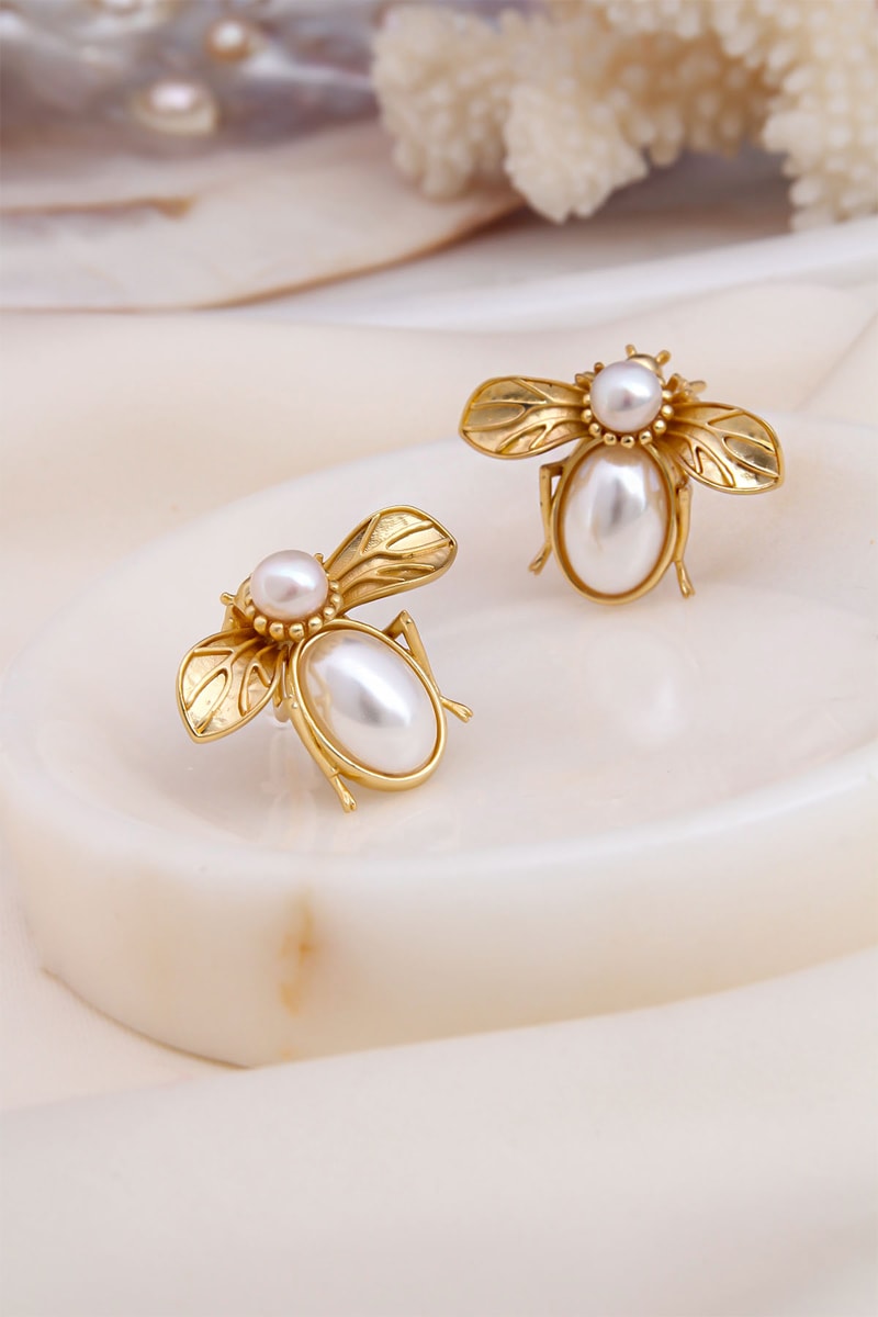 Brincos com 2 pérolas de imitação.