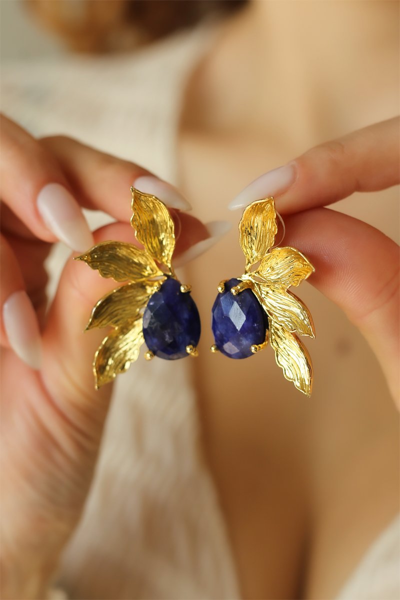 Brincos com uma safira.