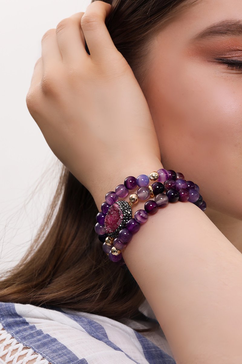 3 pulseiras incrustadas com ametistas.