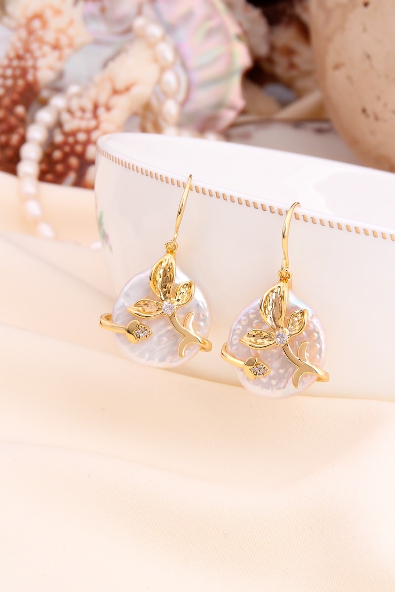Brincos banhados a ouro amarelo com madrepérola.