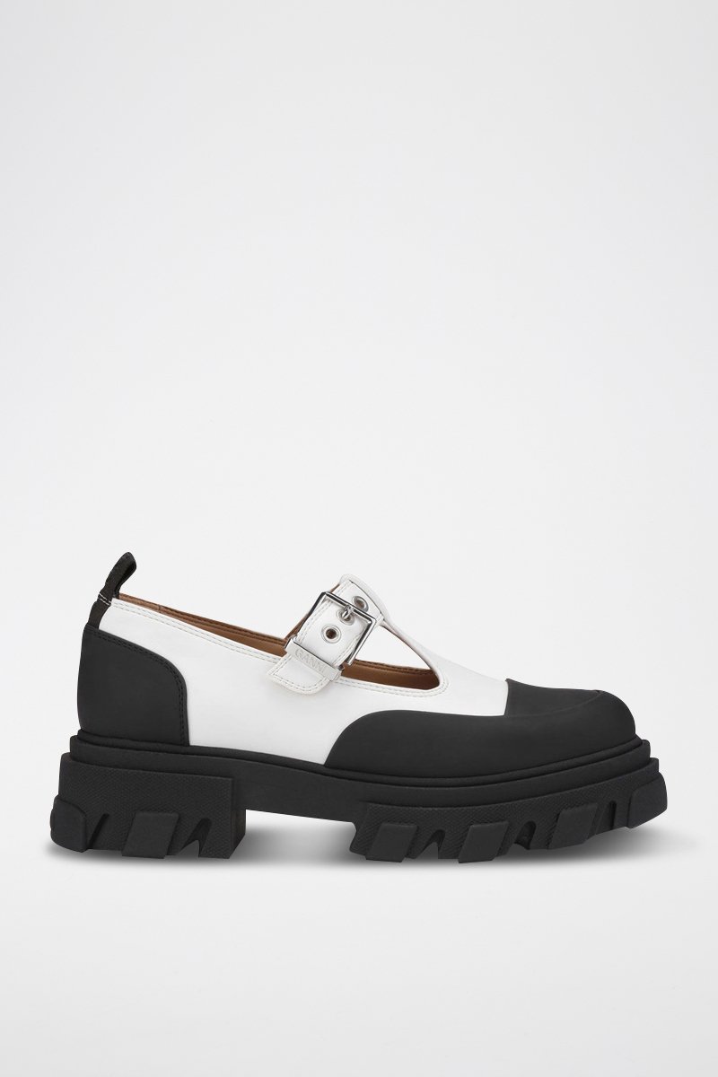 Salomés com plataforma em couro.