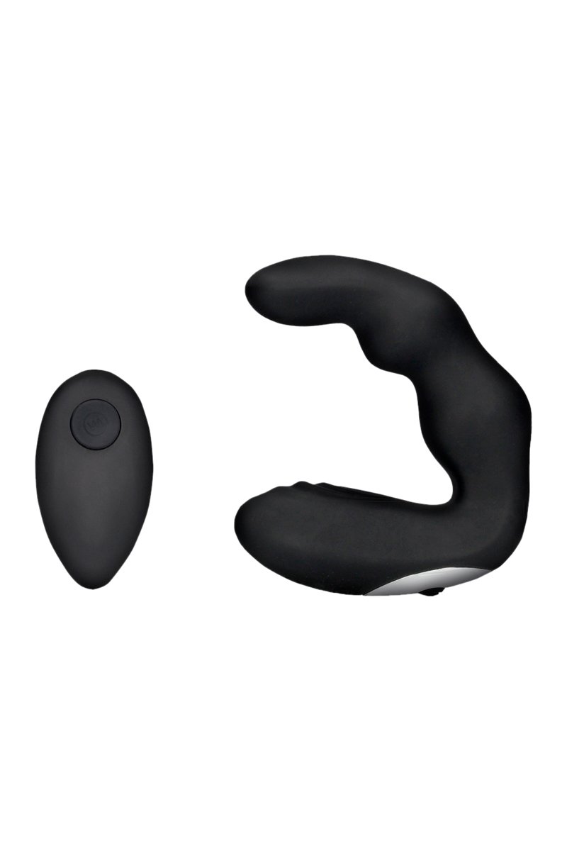Estimulador de próstata curvado com controle remoto de silicone - Preto - 9,5 cm