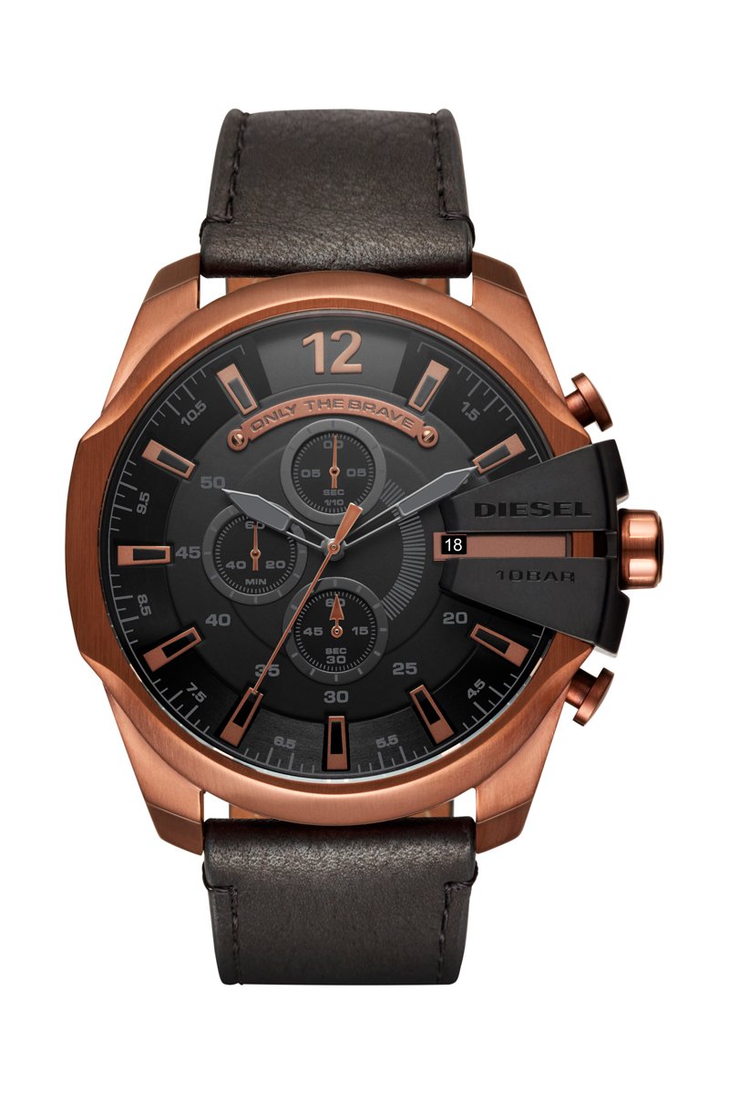 Relógio de quartzo em couro - Cronógrafo - Castanho e acobreado