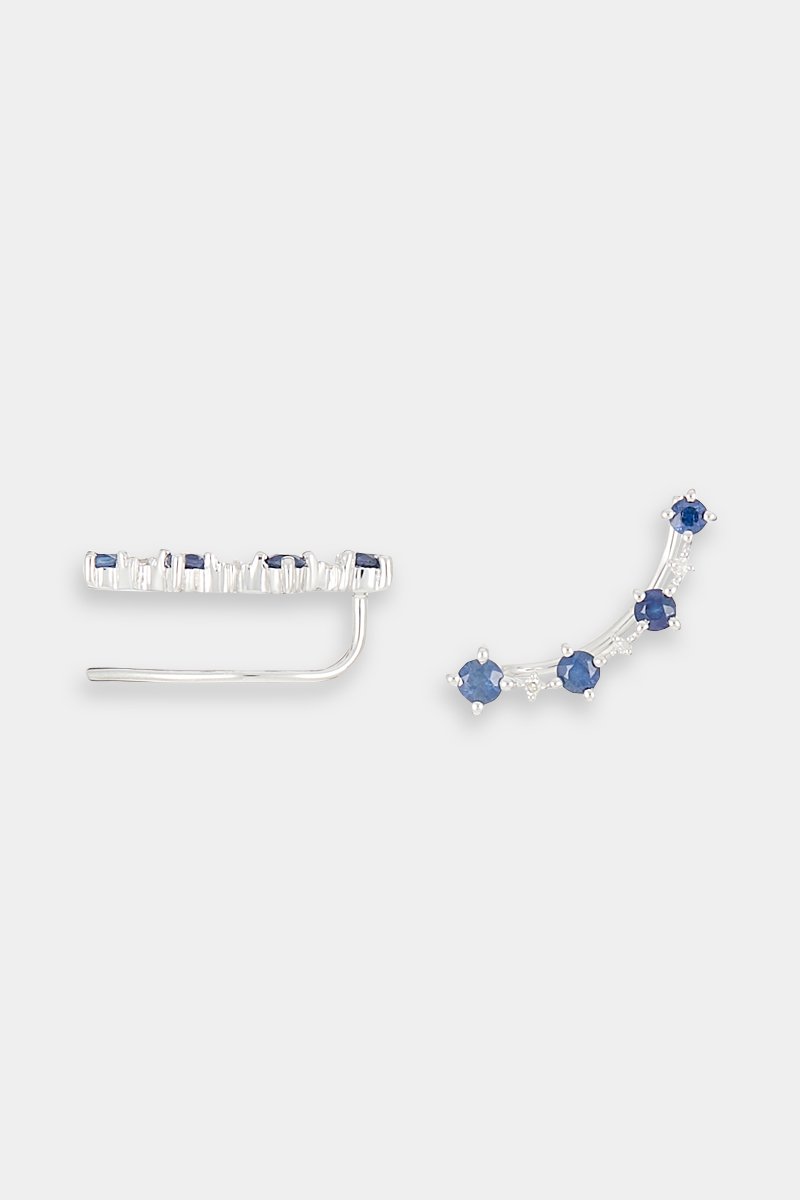 Composição: ouro branco 375/1000, diamantes 0,018 quilates/6 e safiras 0,49 quilates/8