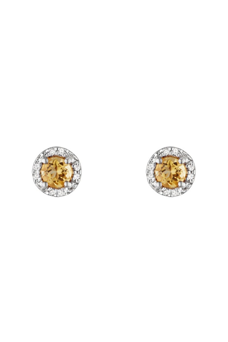 Brincos de ouro amarelo com 8 diamantes e uma citrina.