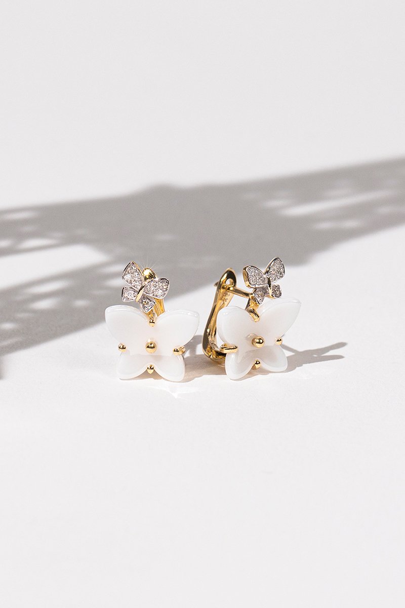 Brincos Enisa - Ouro amarelo, cerâmica e diamantes