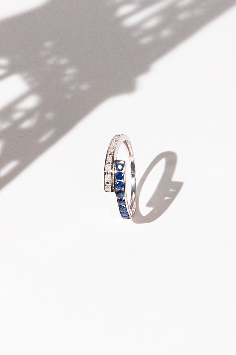 Anel Lanis - Ouro branco, safiras e diamantes