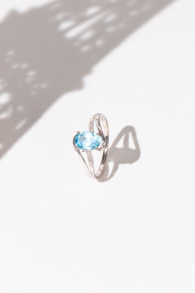 Composição: ouro branco 375/1000, diamantes 0,03 quilates/6 e topázio 1,7 quilates/1