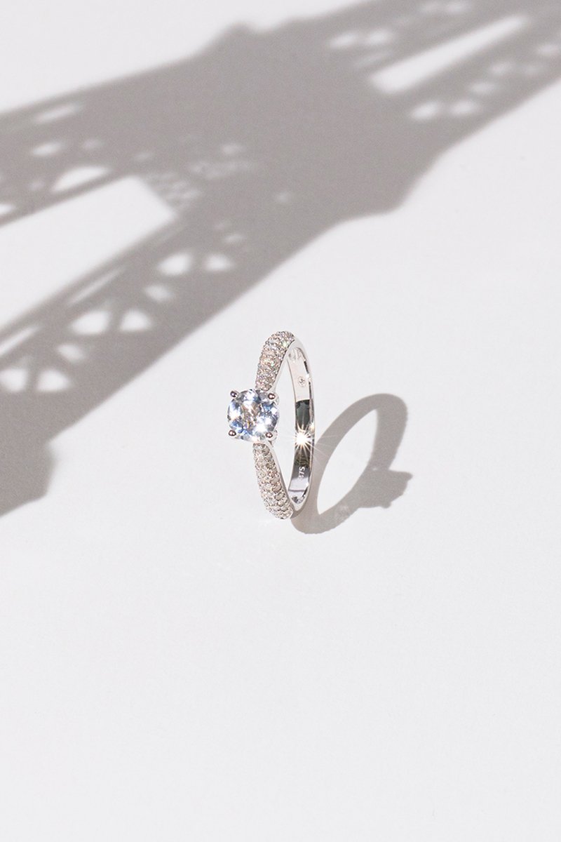 Anel Tawo - Ouro branco, diamantes e topázio