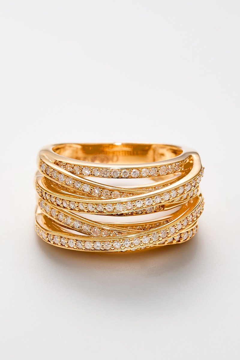 Anel de ouro amarelo com 165 diamantes.