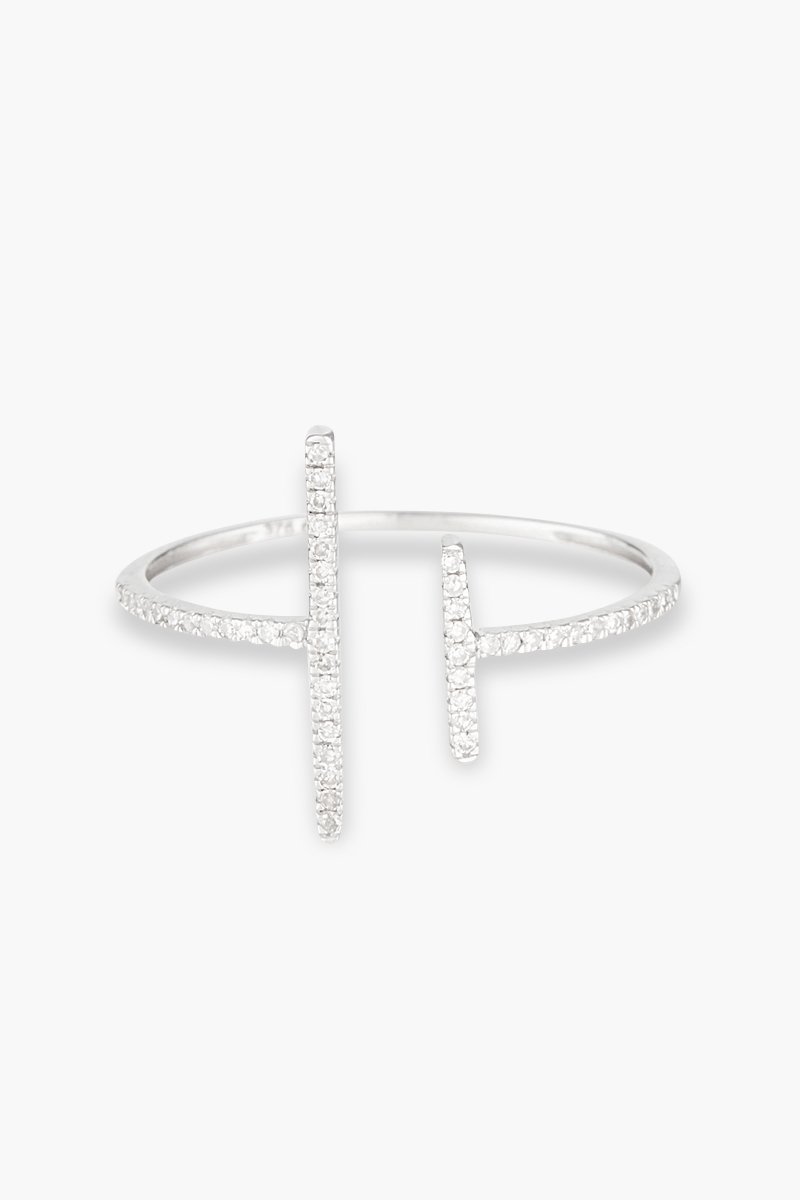 Anel Parallèle asymétrique - Ouro branco e diamantes