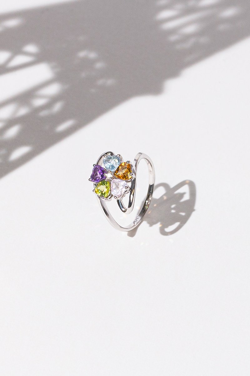 Anel Color Explosion - Ouro branco, ametista, topázio, quartzos citrinos, turmalina, peridoto e diamante