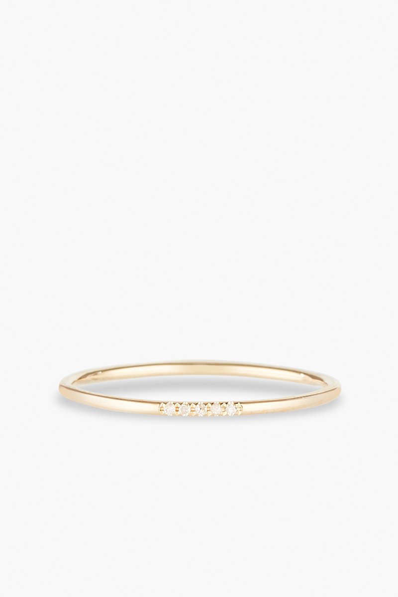 Anel de ouro amarelo com 5 diamantes.